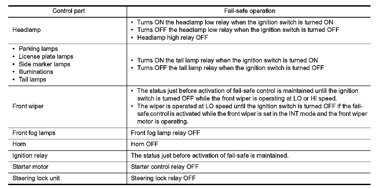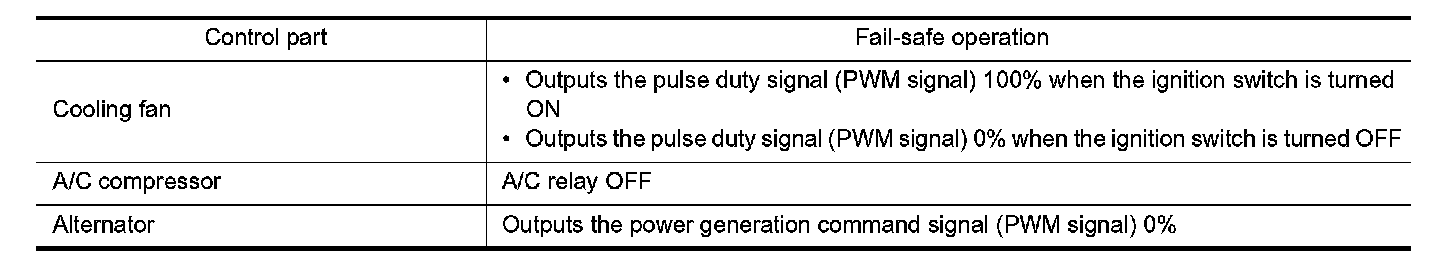 When CAN communication with ECM and BCM is impossible, IPDM E/R performs fail-safe control. After CAN communication recovers normally, it also returns to normal control.