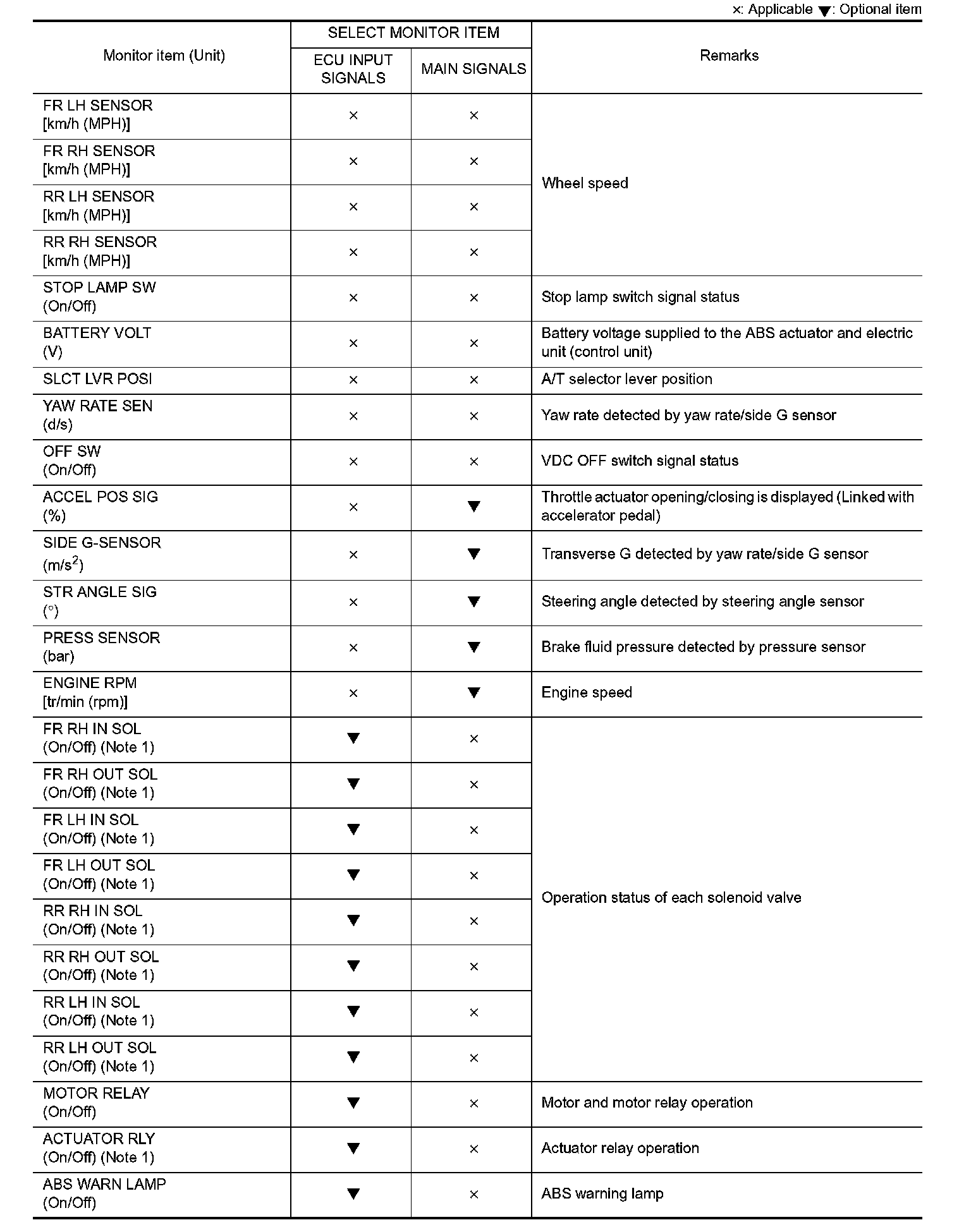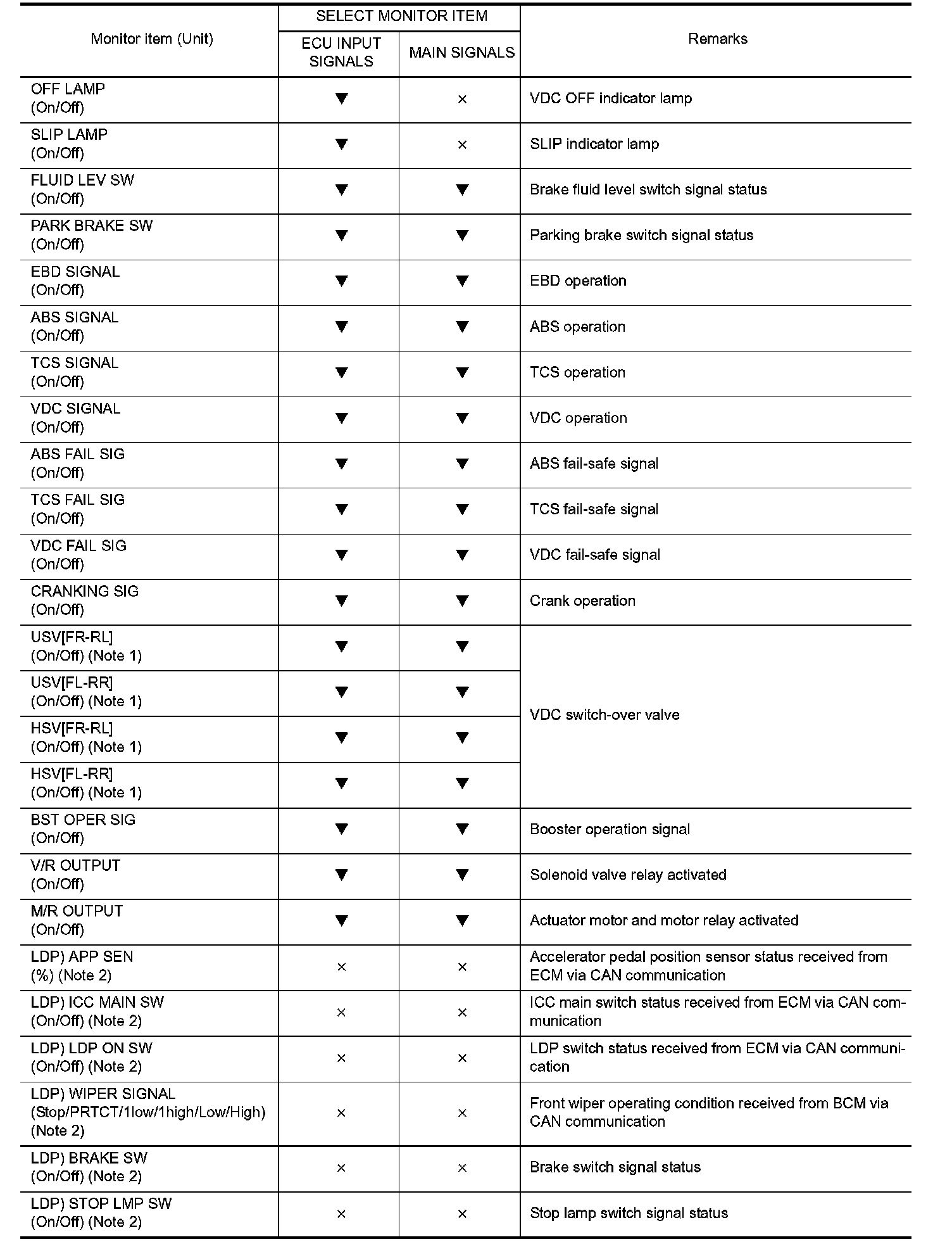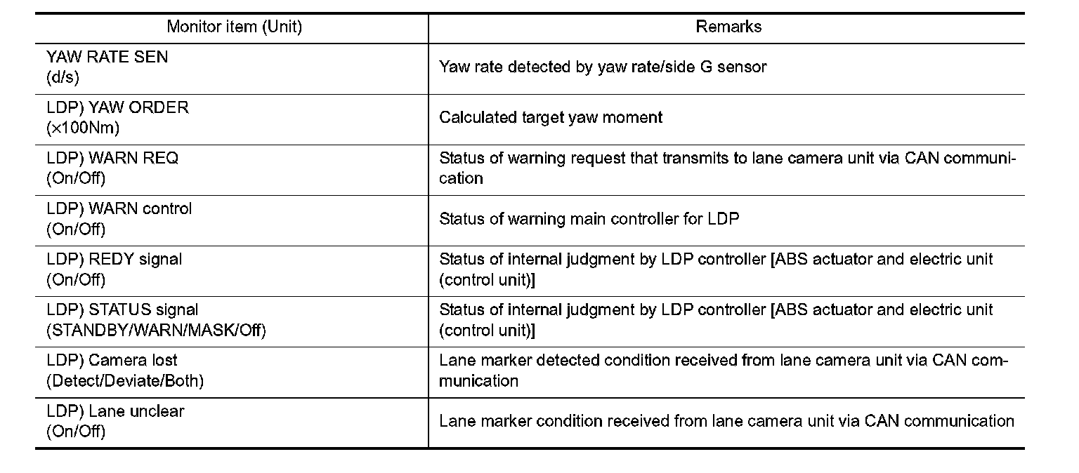 - The active test cannot be started when ABS warning lamp, VDC OFF indicator lamp, SLIP indicator lamp and brake warning lamp are ON.