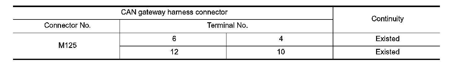 2. Check the continuity between the CAN gateway harness connector terminals.
