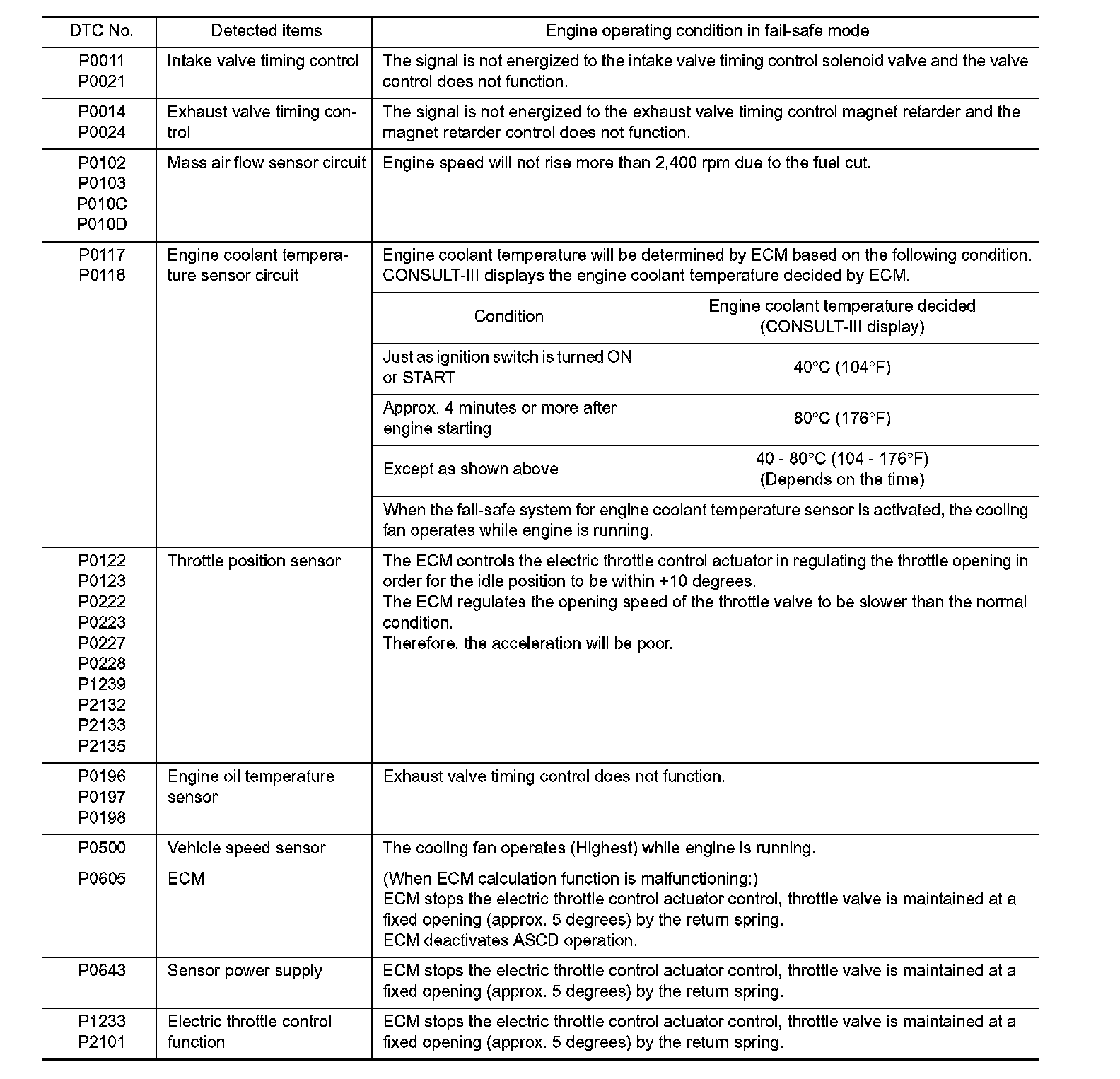Fail-Safe Chart - Non DTC Related Item: