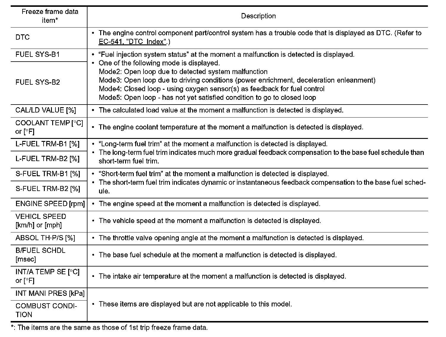 Freeze Frame Data and 1st Trip Freeze Frame Data