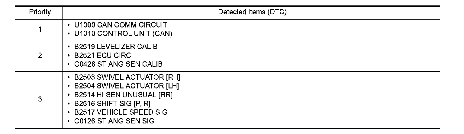 If some DTCs are displayed at the same time, perform inspections one by one based on the following priority chart.