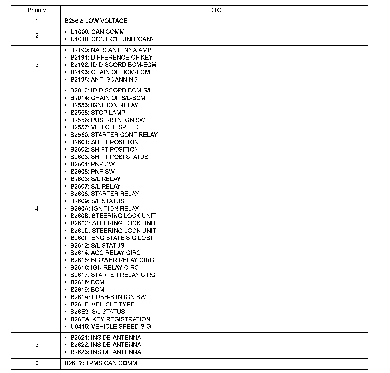 DTC Inspection Priority Chart 1-6: