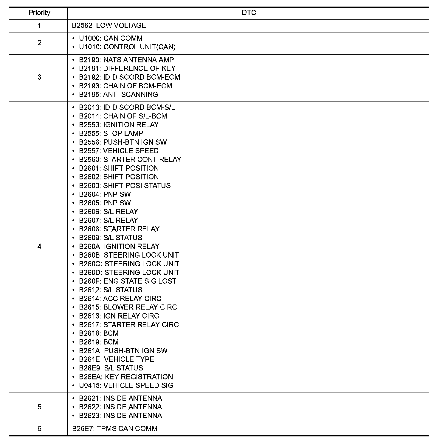 If some DTCs are displayed at the same time, perform inspections one by one based on the following priority chart.