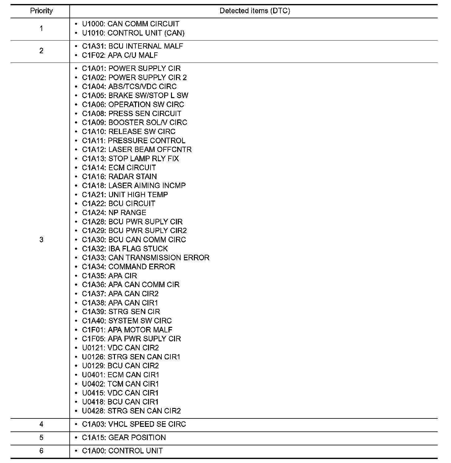 DTC Inspection Priority Chart 1-6: