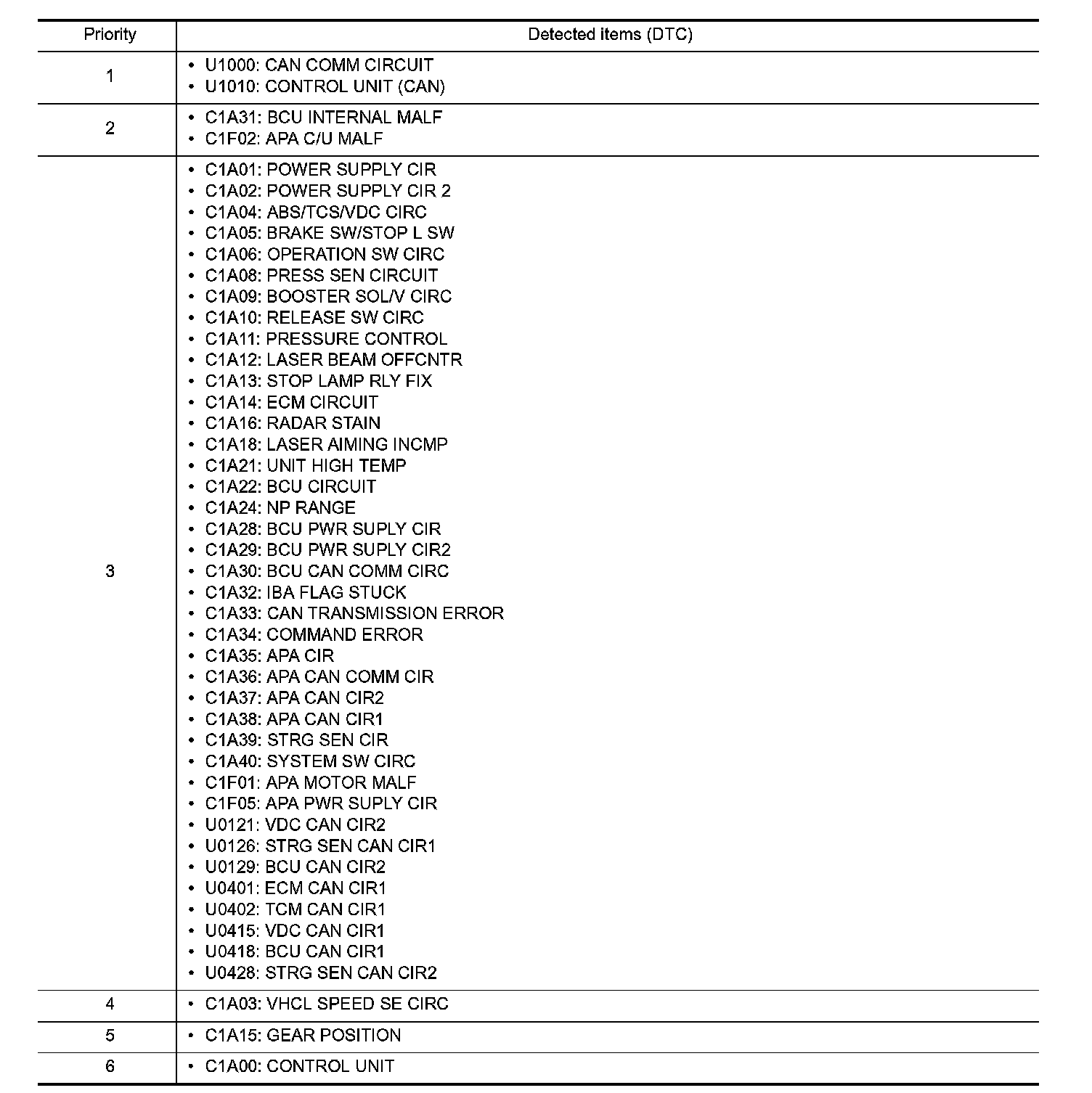 DTC Inspection Priority Chart 1-6: