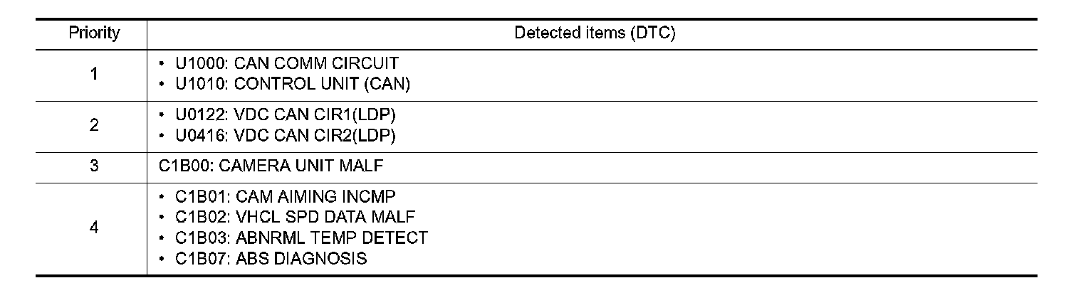 If some DTCs are displayed at the same time, perform inspections one by one based on the following priority chart.