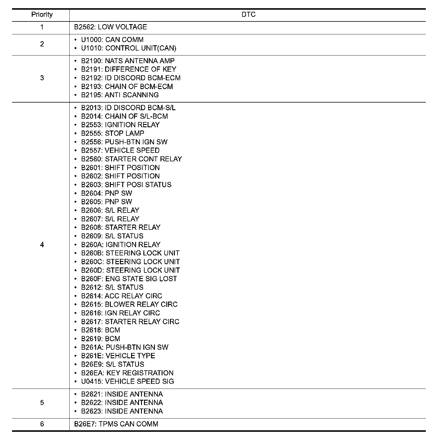 DTC Inspection Priority Chart 1-6: