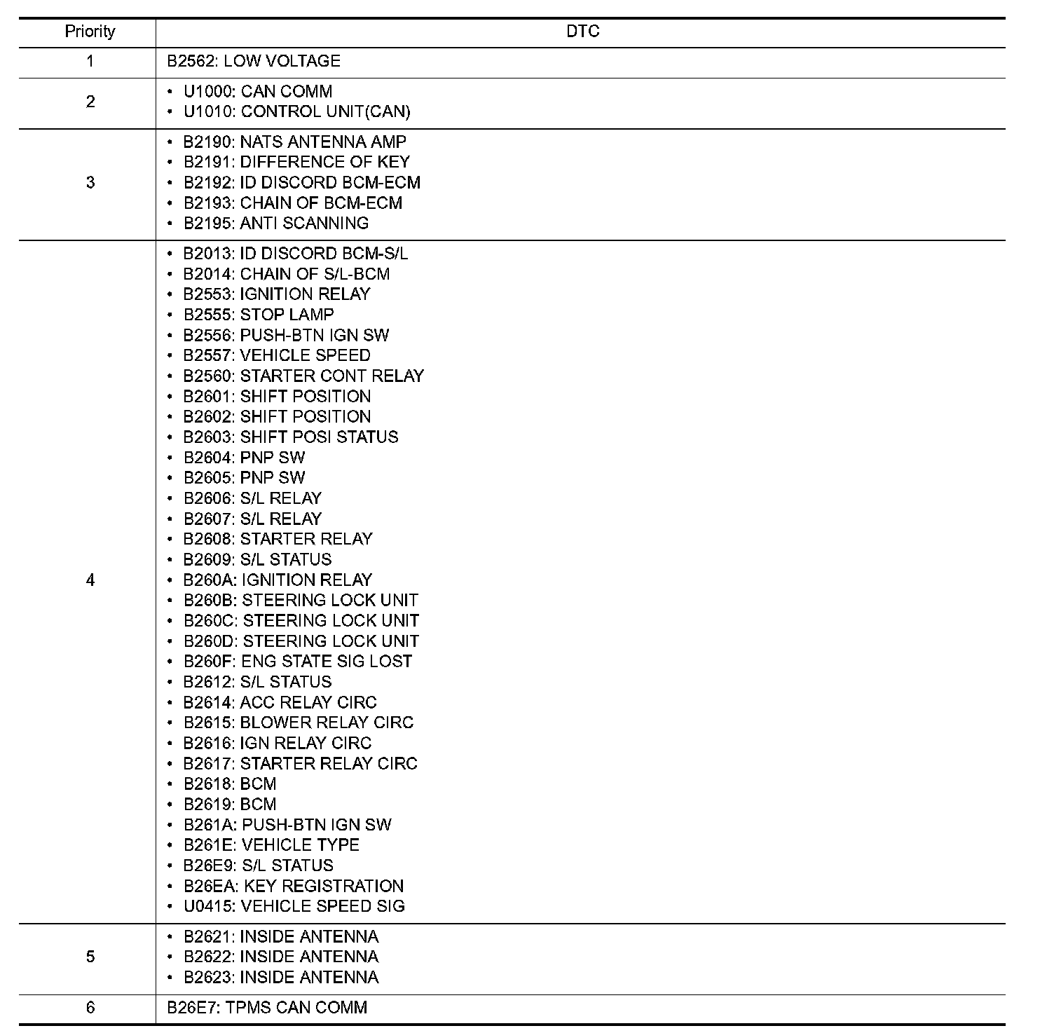 DTC Inspection Priority Chart 1-6: