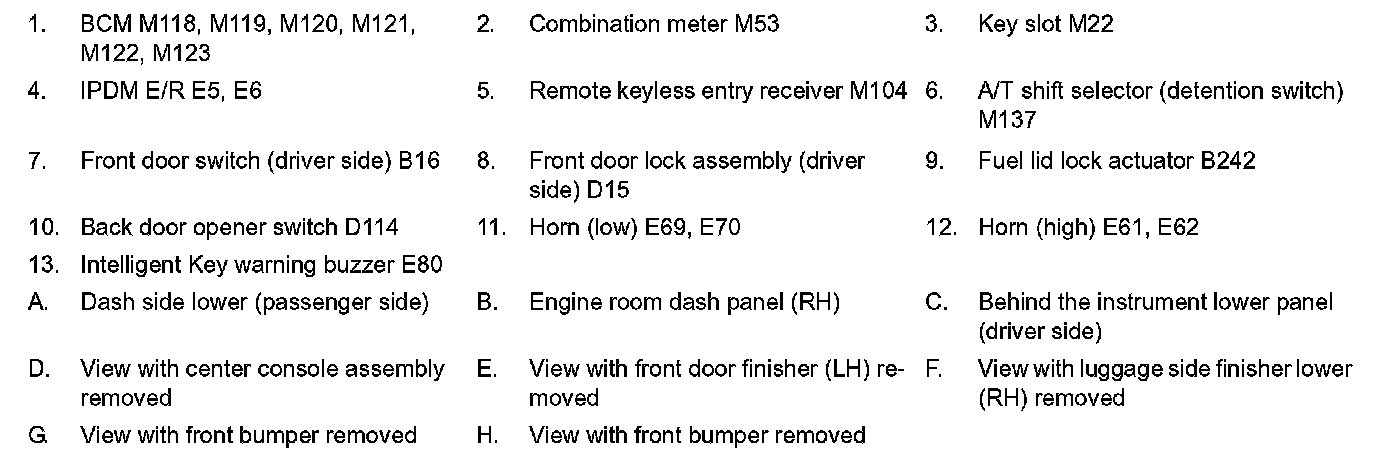 REMOTE KEYLESS ENTRY FUNCTION : Component Parts Location