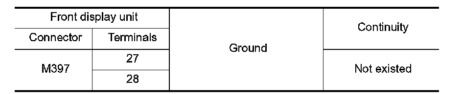 4. Check continuity between front display unit harness connector and ground.