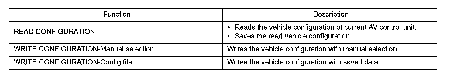 CONFIGURATION (AV CONTROL UNIT) CONFIGURATION (AV CONTROL UNIT) : Description