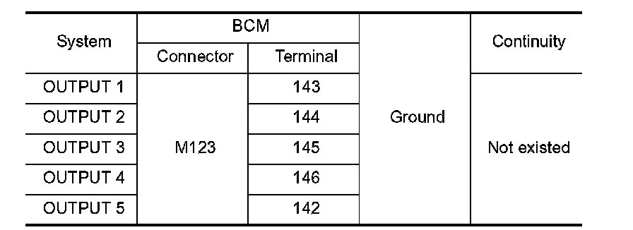 1.CHECK OUTPUT 1 - 5 SYSTEM CIRCUIT FOR OPEN
