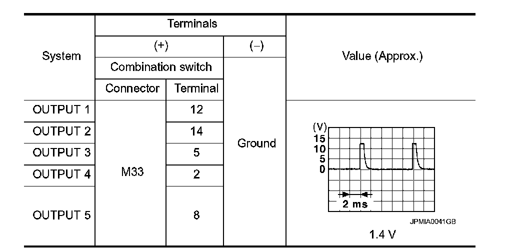 2.CHECK OUTPUT 1 - 5 SYSTEM CIRCUIT FOR SHORT