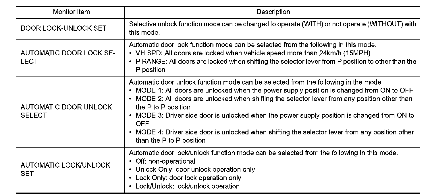 CONSULT-III performs the following functions via CAN communication with BCM.