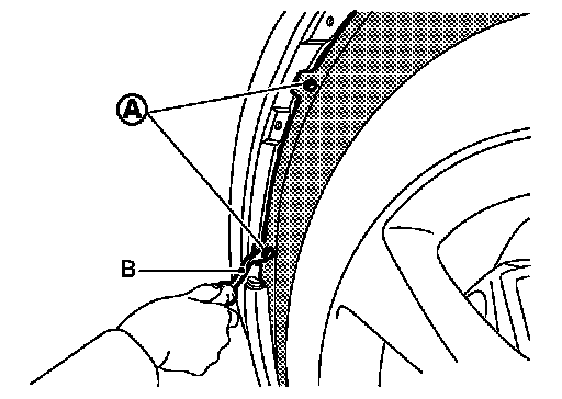 2. Remove front fender protectors (front and rear side) fixing grommets (A) with a remover tool (B).