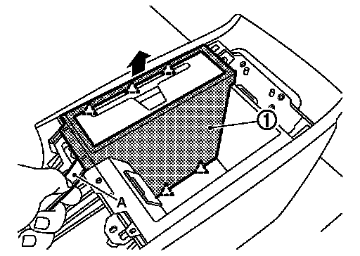 - Remove console hinge mask (1) fixing pawls with remover tool