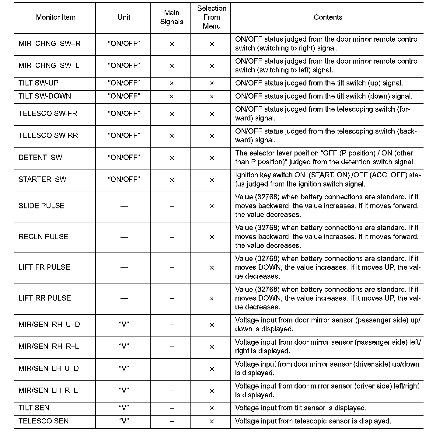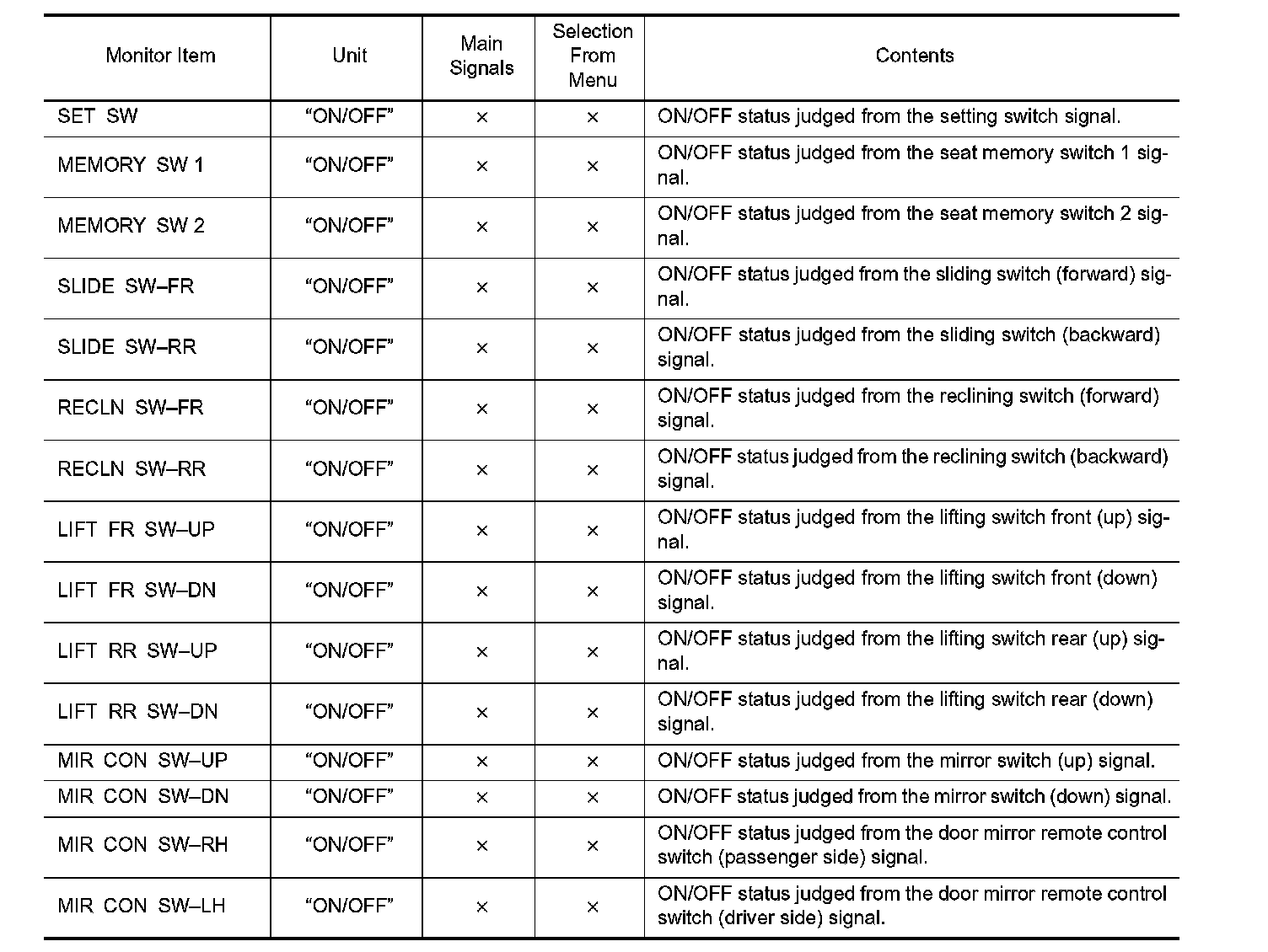 DIAGNOSIS SYSTEM (DRIVER SEAT C/U)