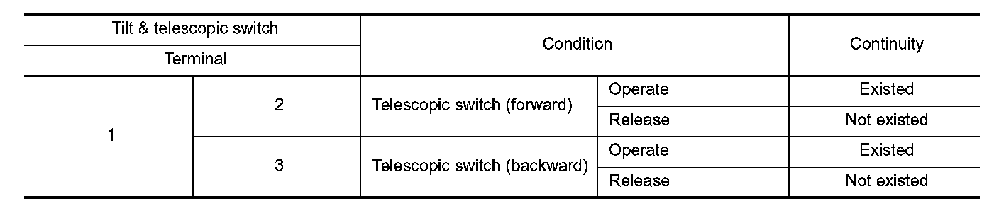 3. Check continuity between tilt & telescopic switch terminals.
