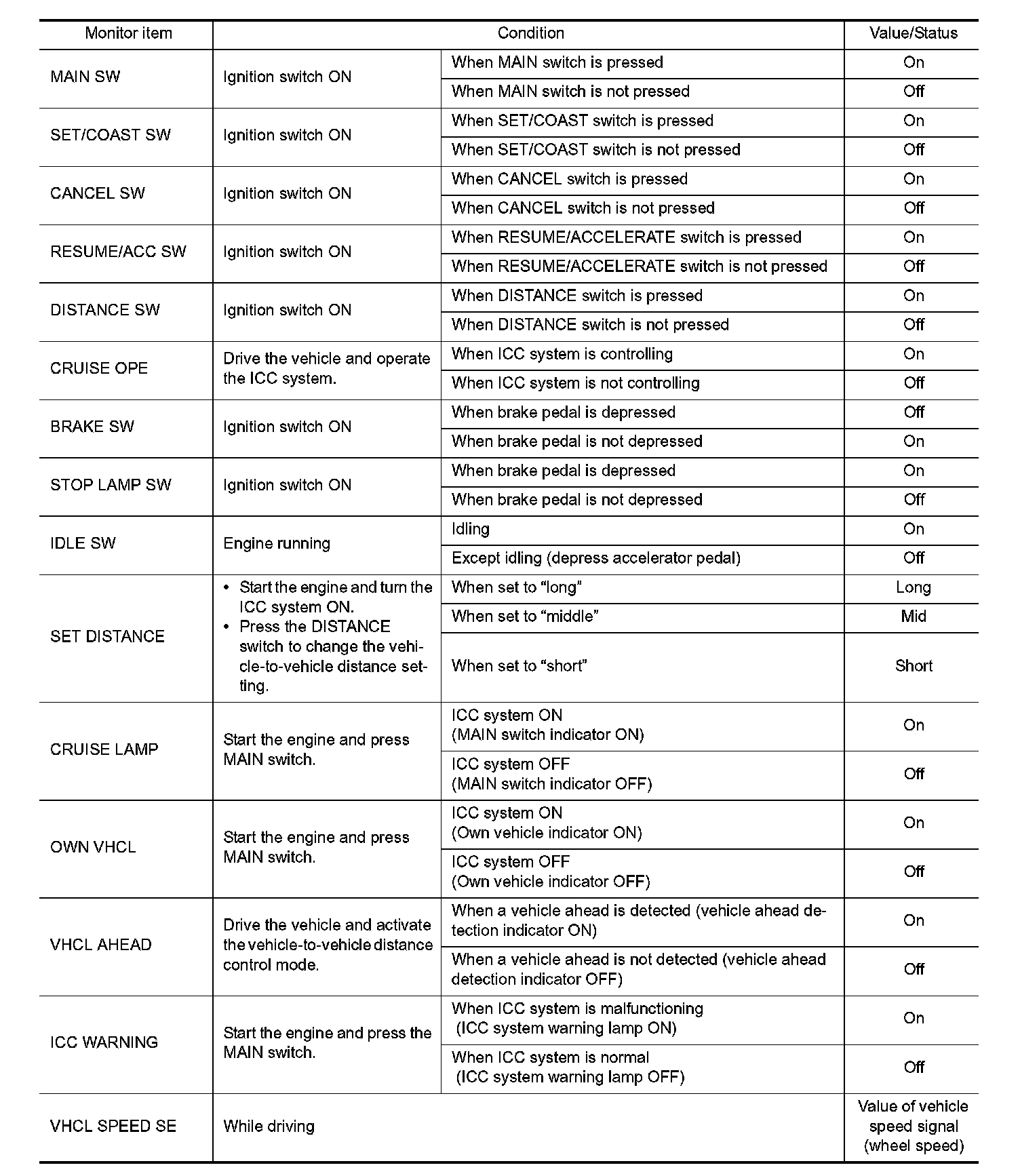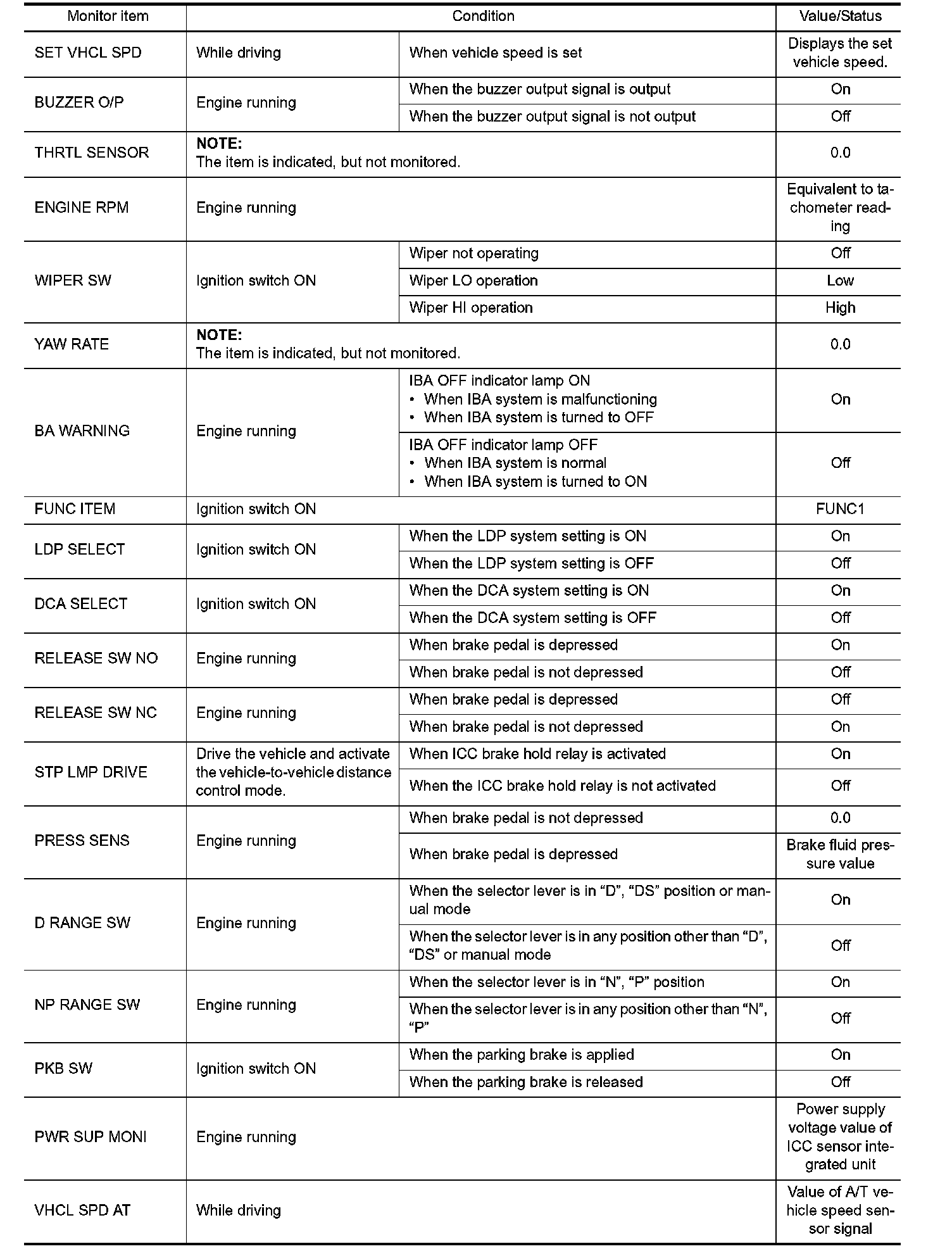 Pinout Values and Diagnostic Parameters