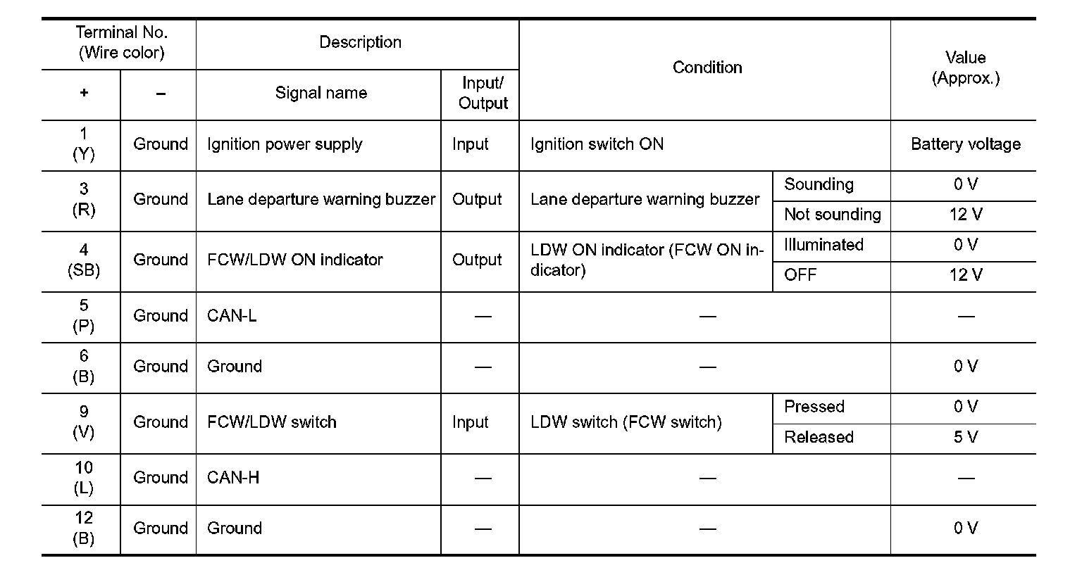 Pinout Values and Diagnostic Parameters