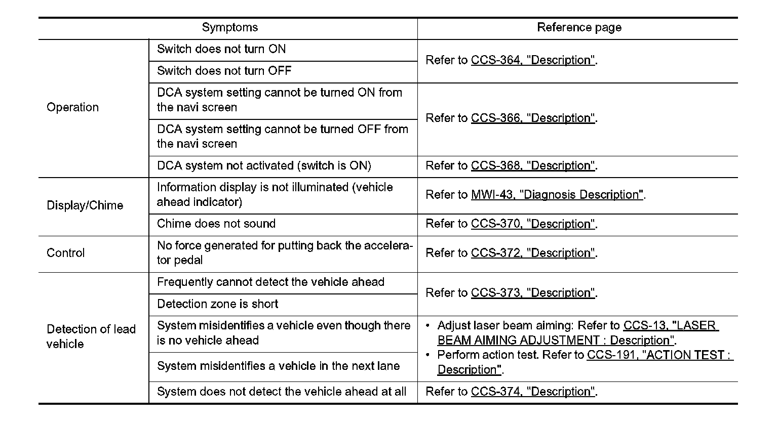 DISTANCE CONTROL ASSIST SYSTEM SYMPTOMS