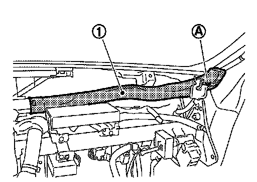 2. Remove mounting clip (A), and then remove side defroster nozzle (right) (1).