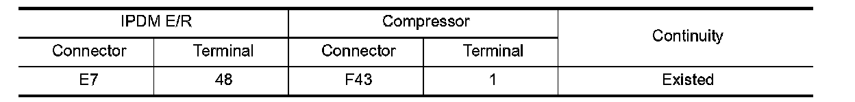 3. Check continuity between IPDM E/R harness connector and compressor harness connector.