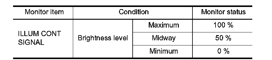4. While operating the illumination control switch, check the monitor status.