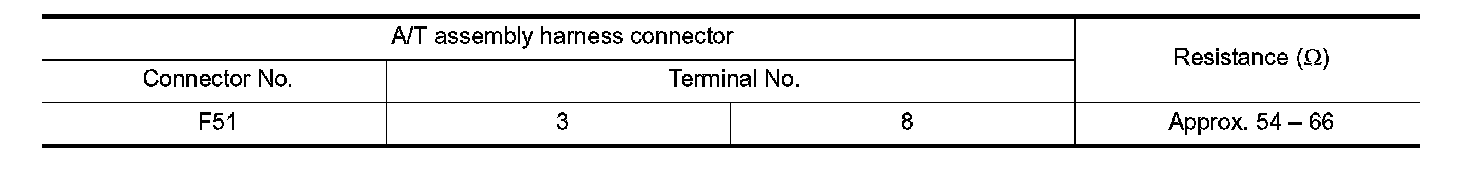 2. Check the resistance between the A/T assembly harness connector terminals.
