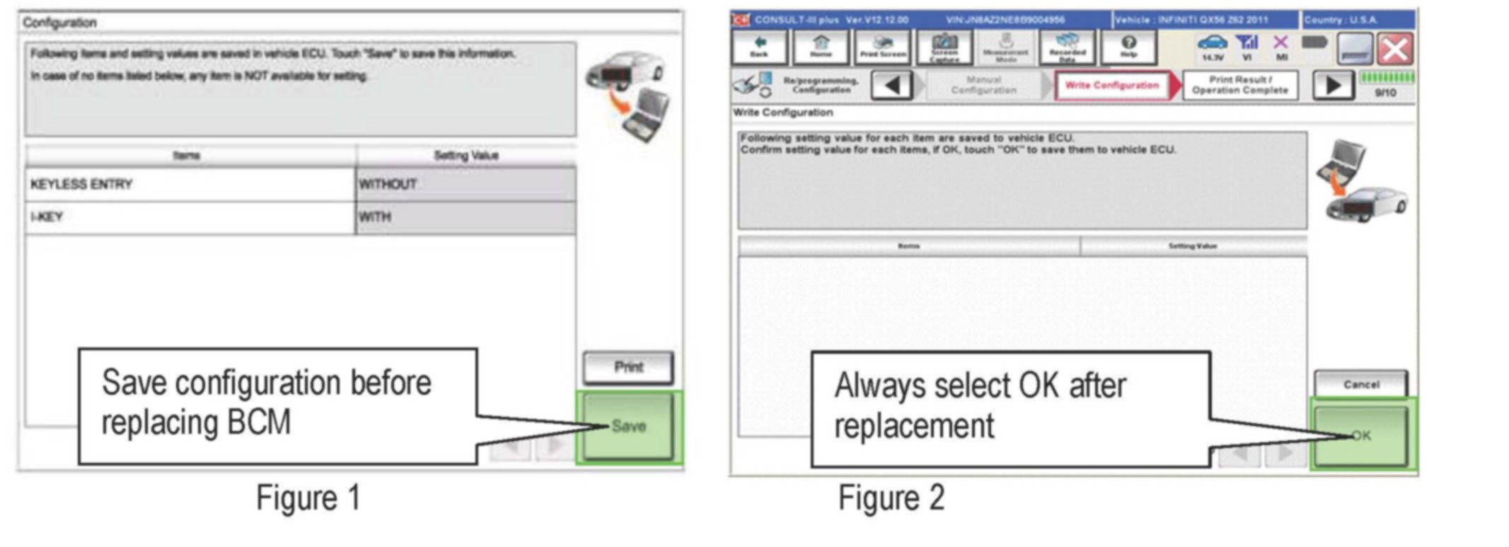 After replacement "Write Configuration" MUST then be performed and OK selected, even if there are not any options listed. (See Figure 2)