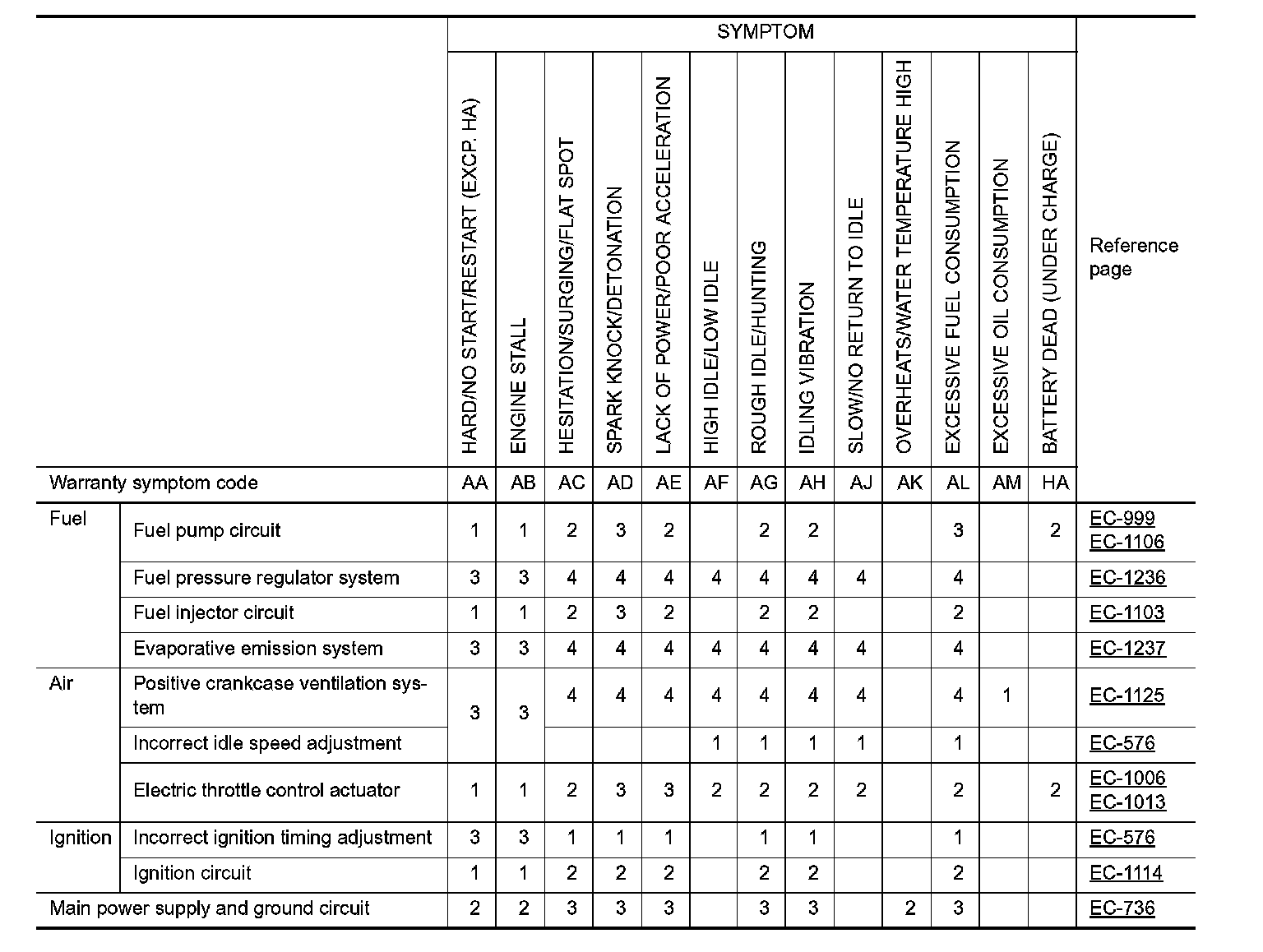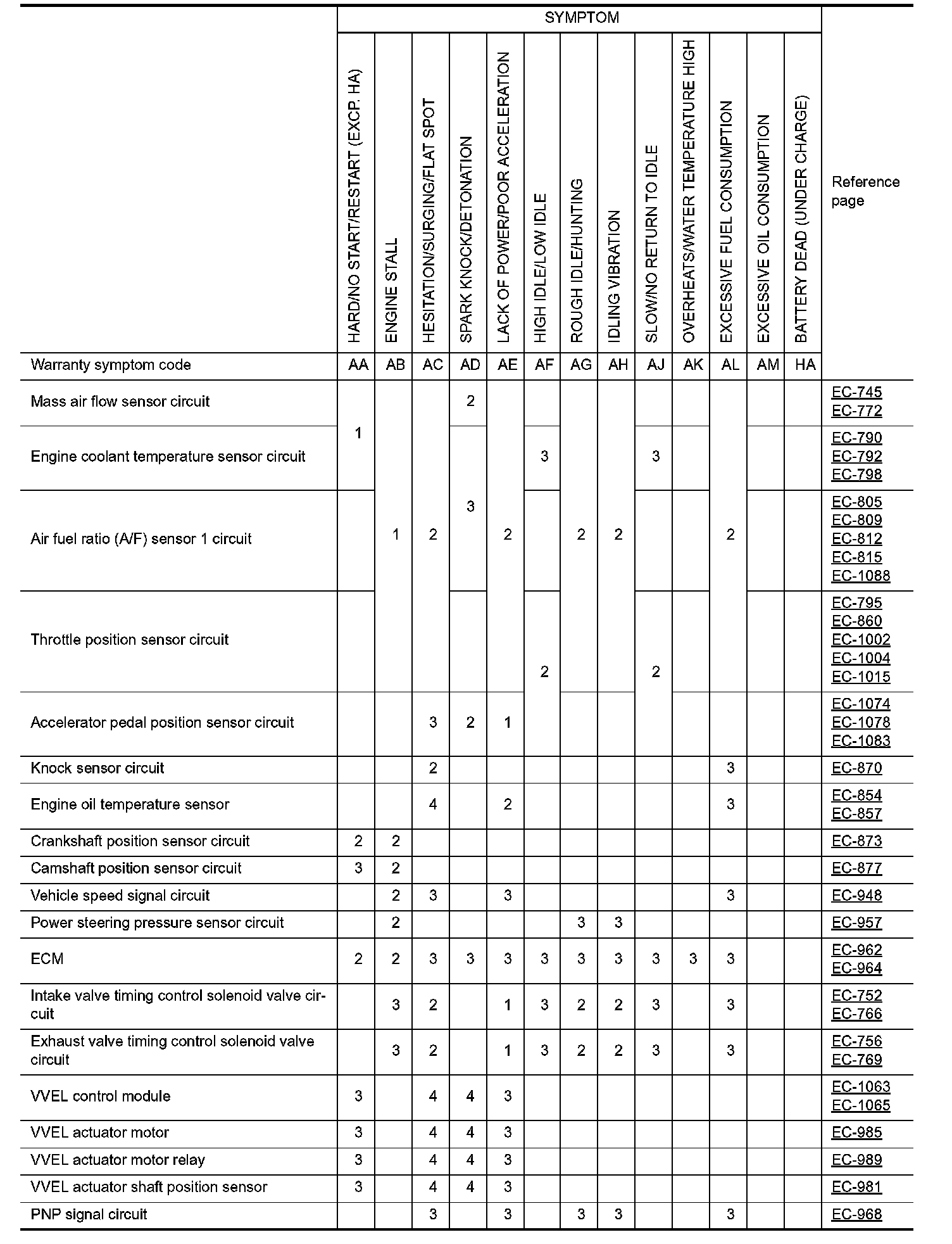 ENGINE CONTROL SYSTEM SYMPTOMS