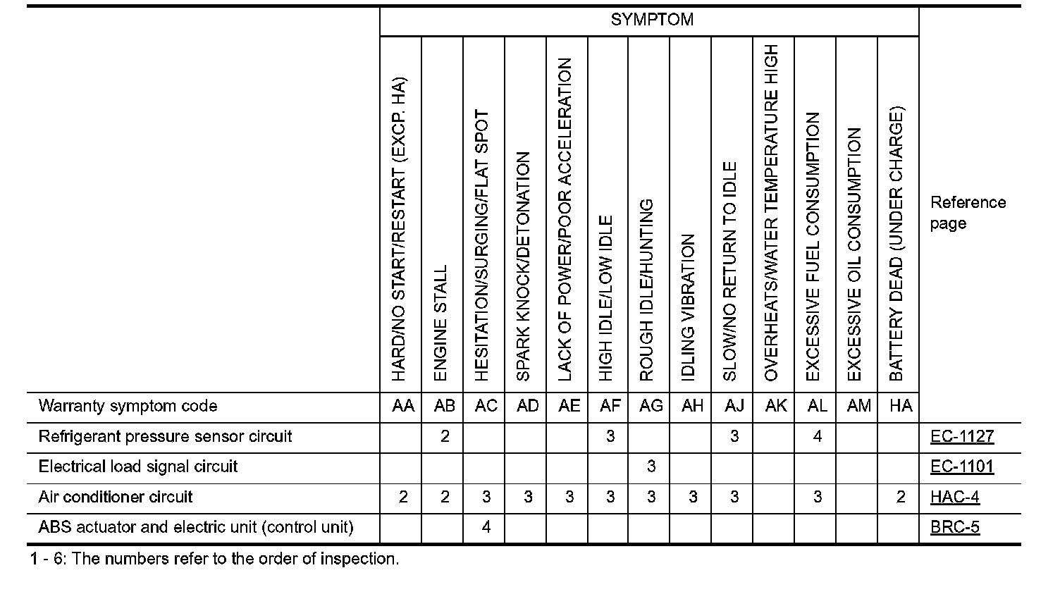 Symptom Table - Basic Engine Control System (Part 2):