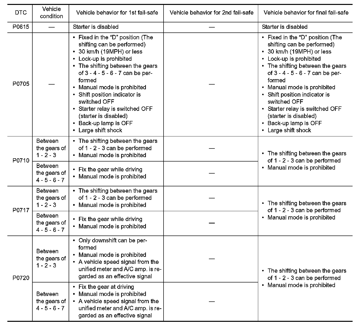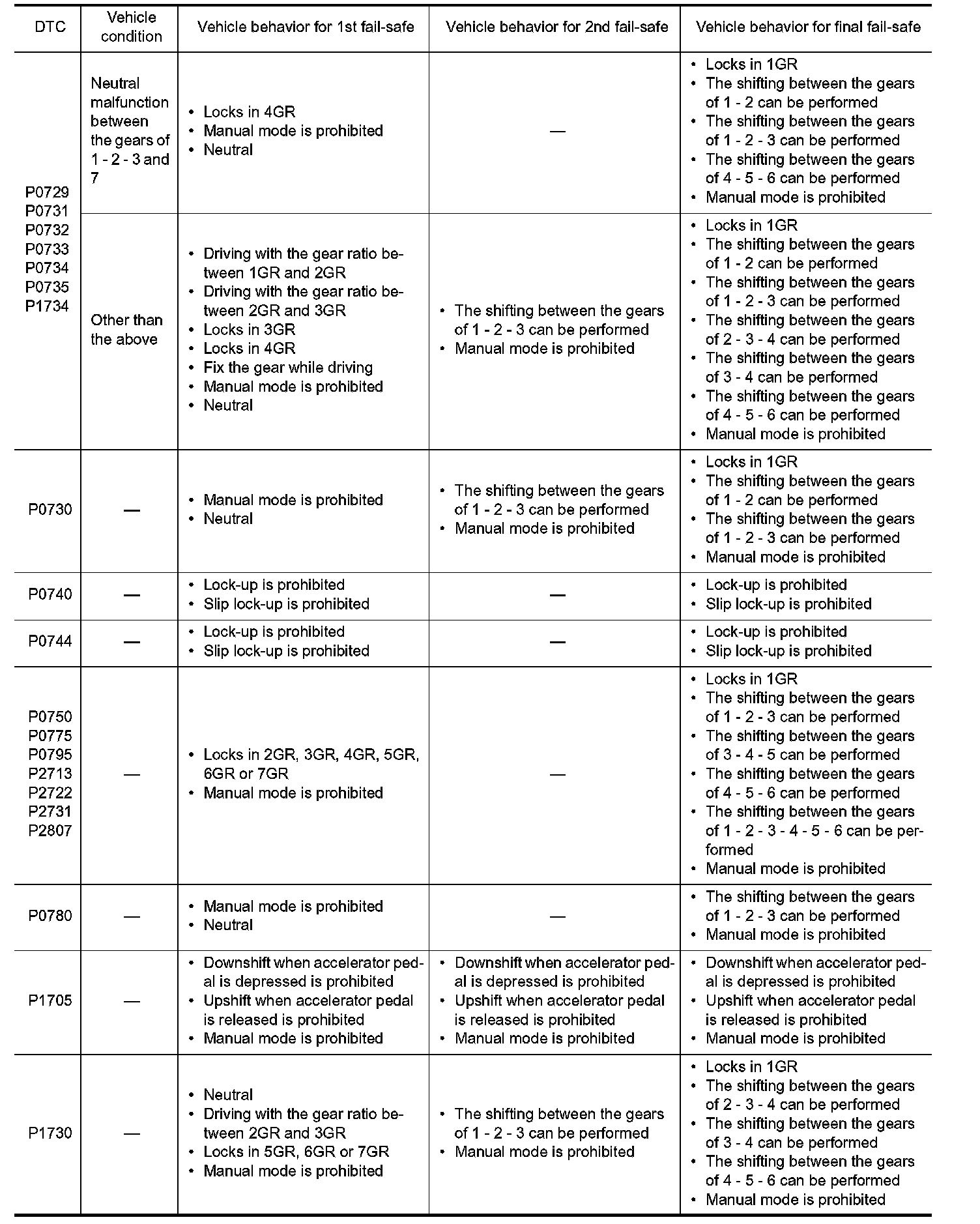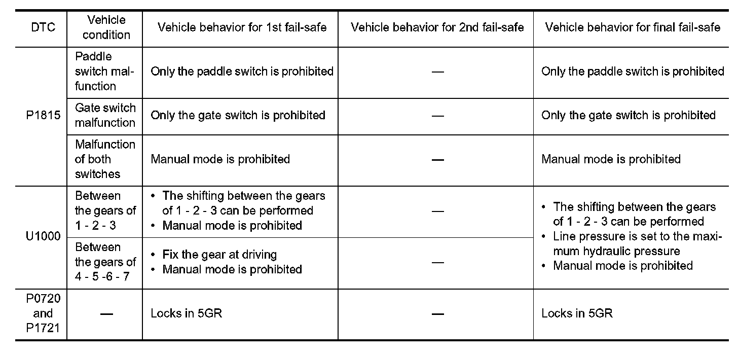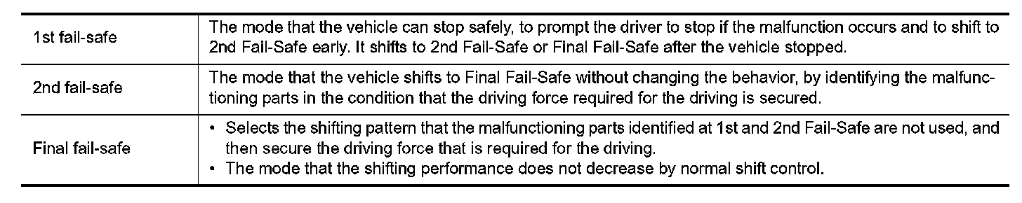 TCM has the electrical fail-safe mode. The mode is divided into a maximum of 3 phases (1st Fail-Safe, 2nd