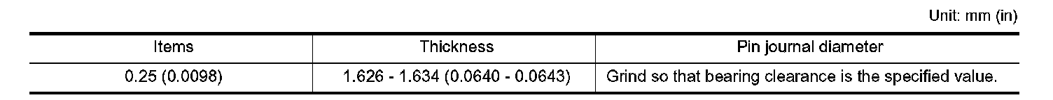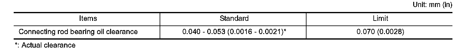 Connecting rod big end diameter (Without bearing), Unit: mm (in)