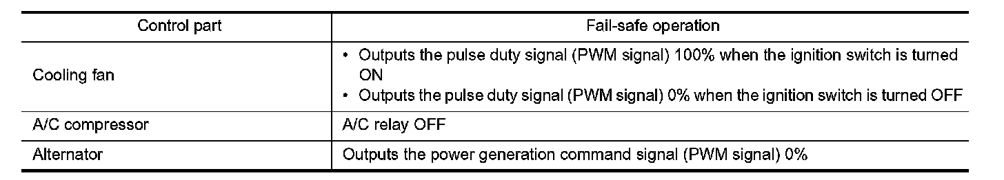 When CAN communication with ECM and BCM is impossible, IPDM E/R performs fail-safe control. After CAN communication recovers normally, it also returns to normal control.