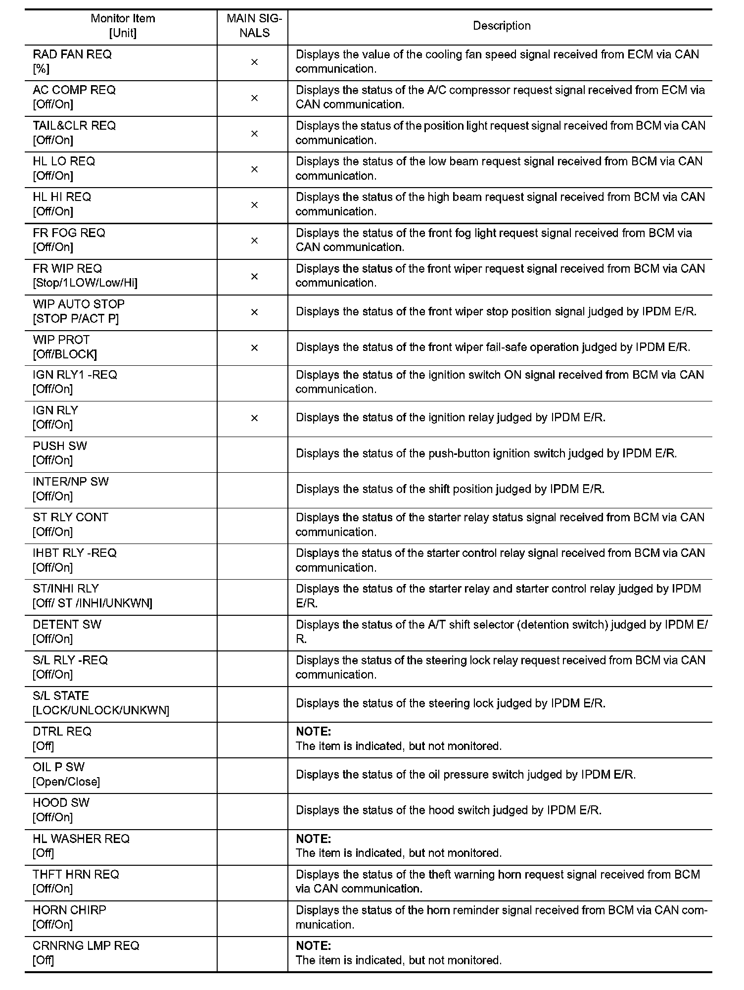 CONSULT-III performs the following functions via CAN communication with IPDM E/R.