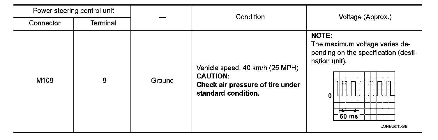 3. Check signal between power steering control unit harness connector and ground with oscilloscope.