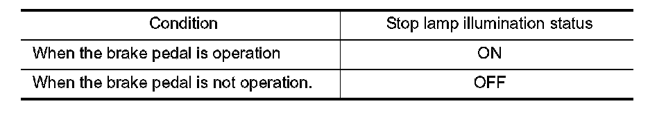Operate the brake pedal. Then check that the stop lamp in the rear combination lamp turns ON/OFF correctly.