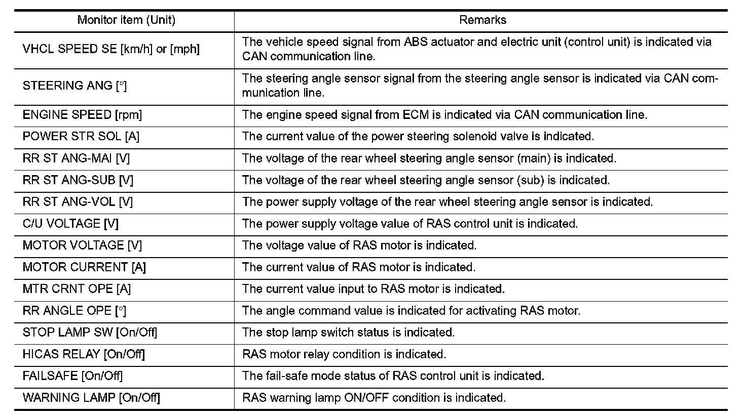 DIAGNOSIS SYSTEM (RAS CONTROL UNIT)