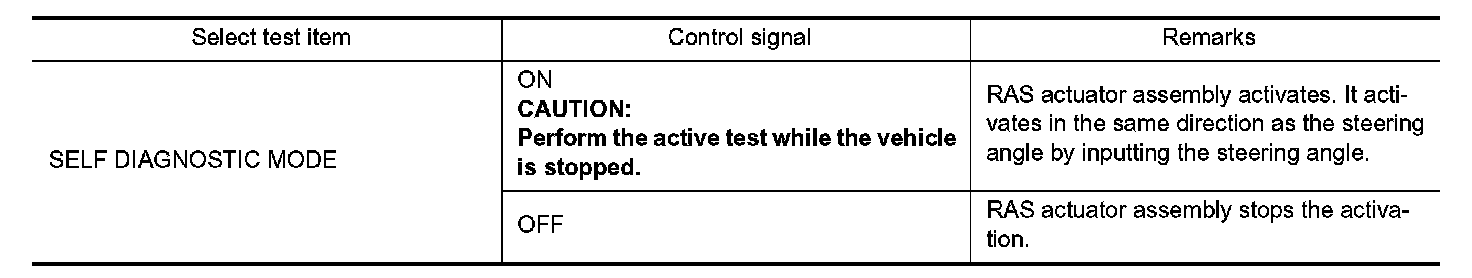 - The control signal forcibly activates (ON/OFF) RAS actuator assembly, performs the self-diagnosis and checks each sensor in "SELF DIAGNOSTIC MODE".