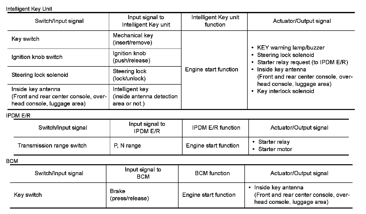 - System Description for any functions other than engine start function of Intelligent Key system.