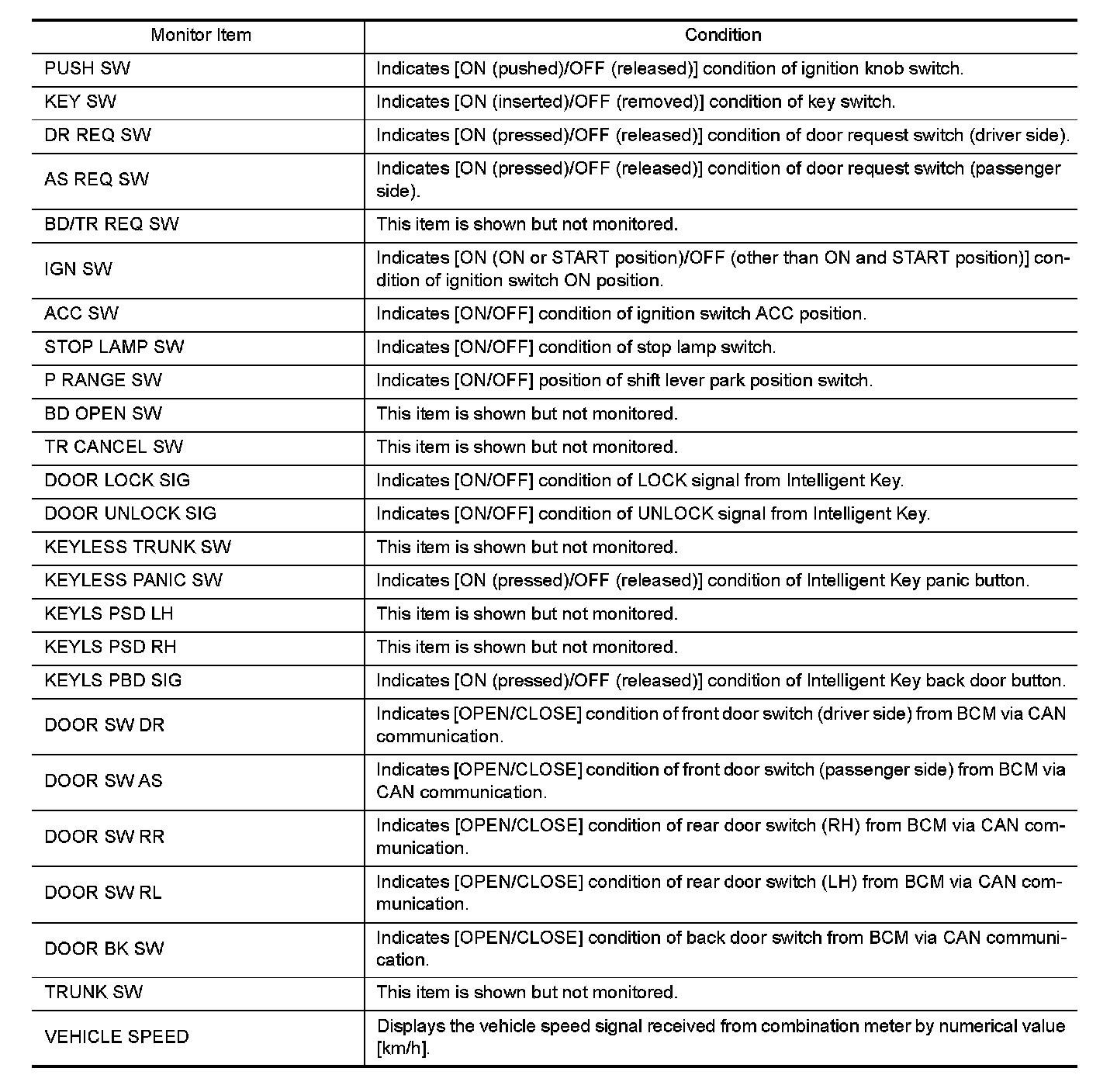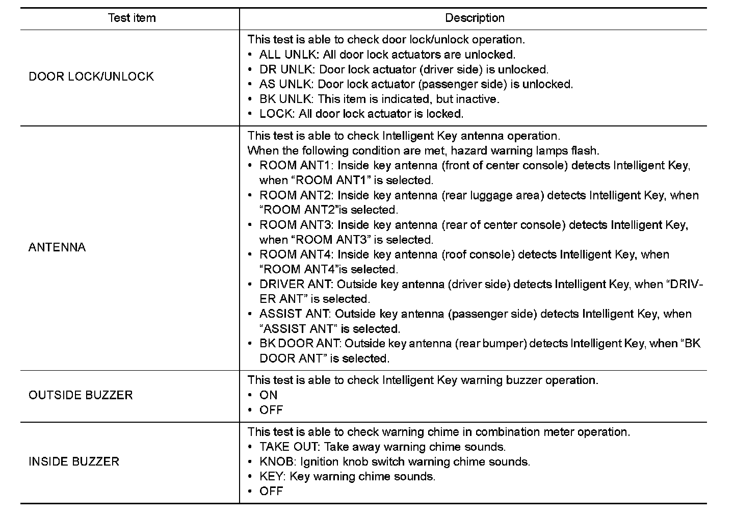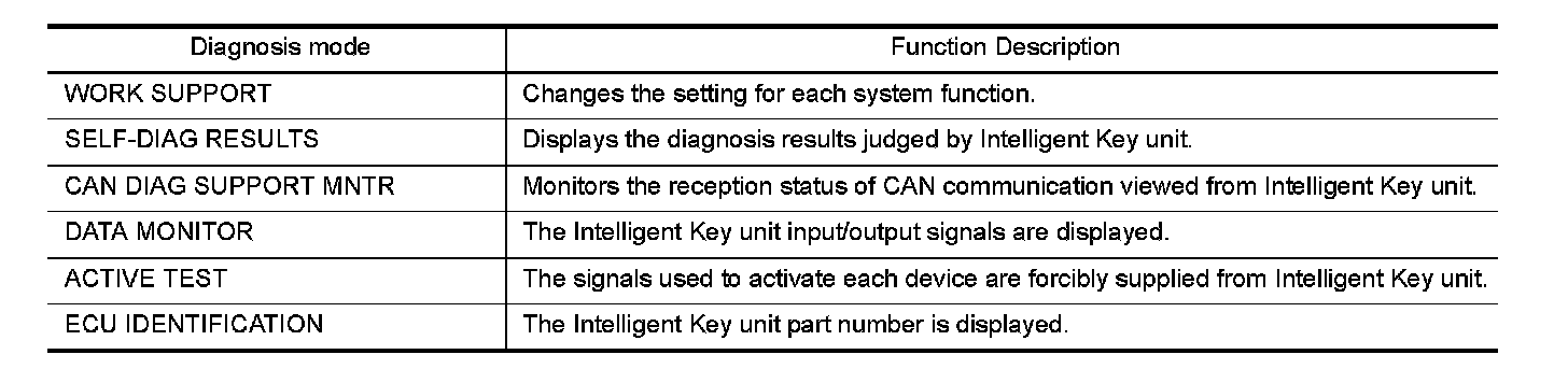 CONSULT-III performs the following functions via CAN communication with Intelligent Key unit.