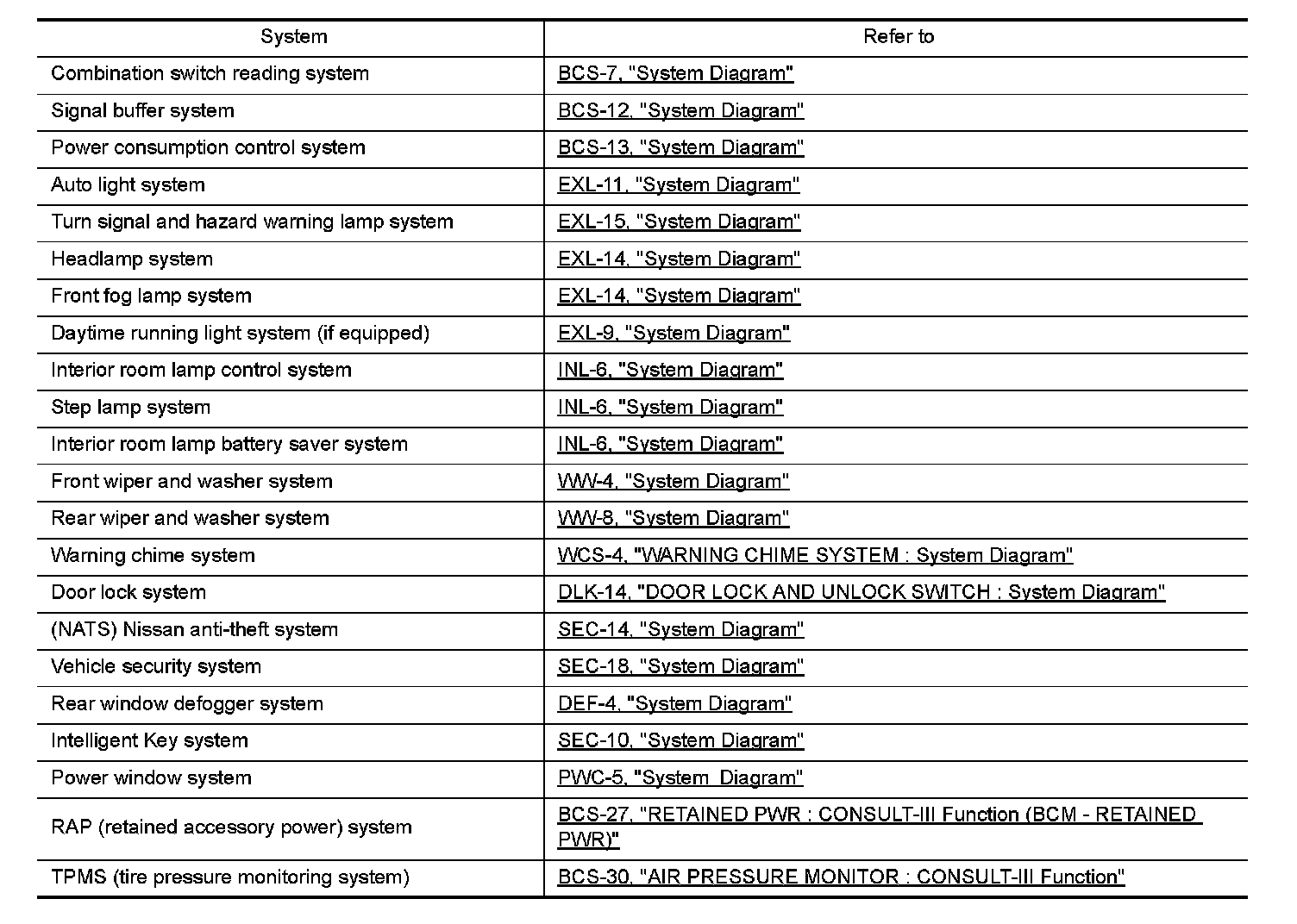 - BCM is equipped with the diagnosis function that performs the diagnosis with CONSULT-III and various settings.