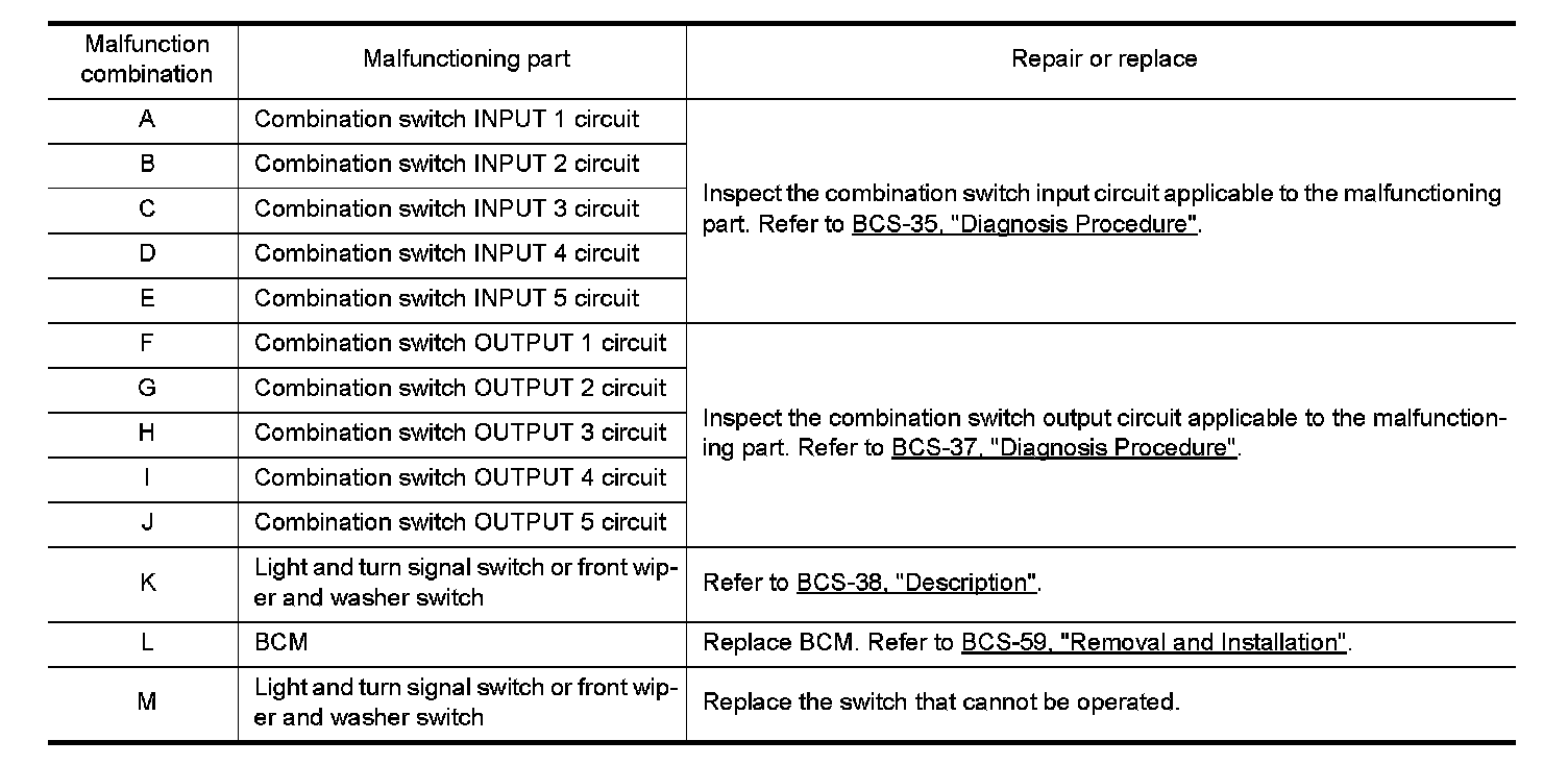 COMBINATION SWITCH SYSTEM SYMPTOMS