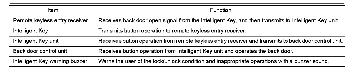 BACK DOOR OPENER FUNCTION