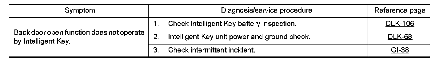 INTELLIGENT KEY : Symptom Table