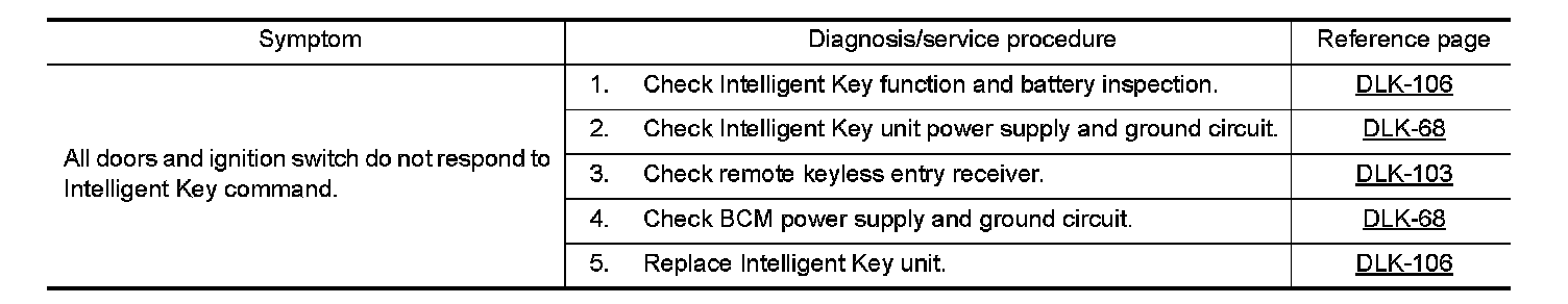 INTELLIGENT KEY SYSTEM SYMPTOMS