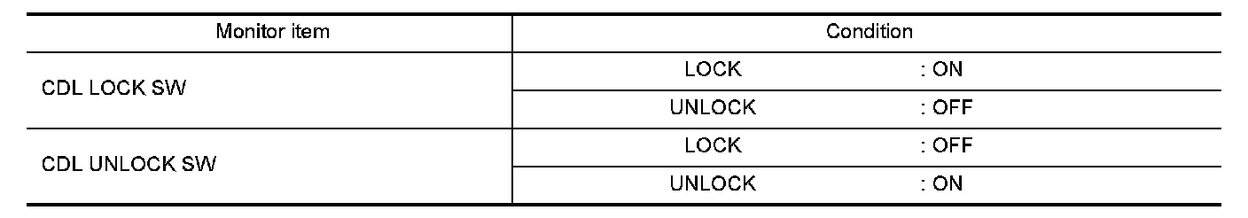 Check CDL LOCK SW, CDL UNLOCK SW in Data Monitor mode with CONSULT-III.