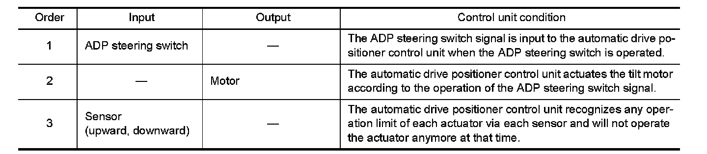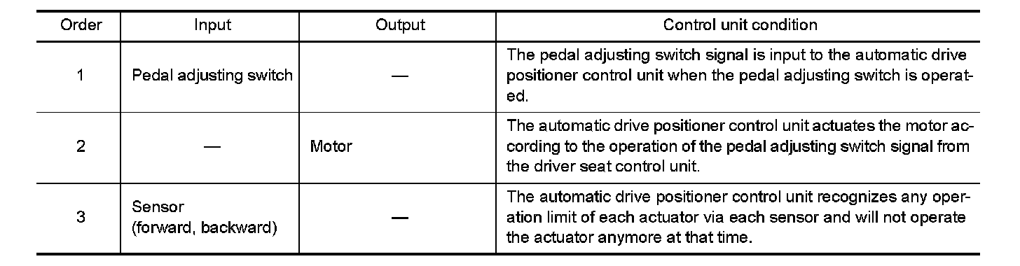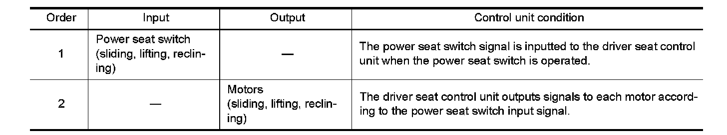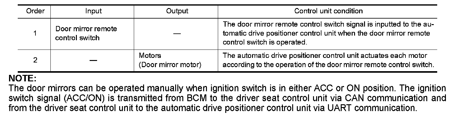 2. Operate power seat switch, pedal adjusting switch, ADP steering switch or door mirror remote control switch.